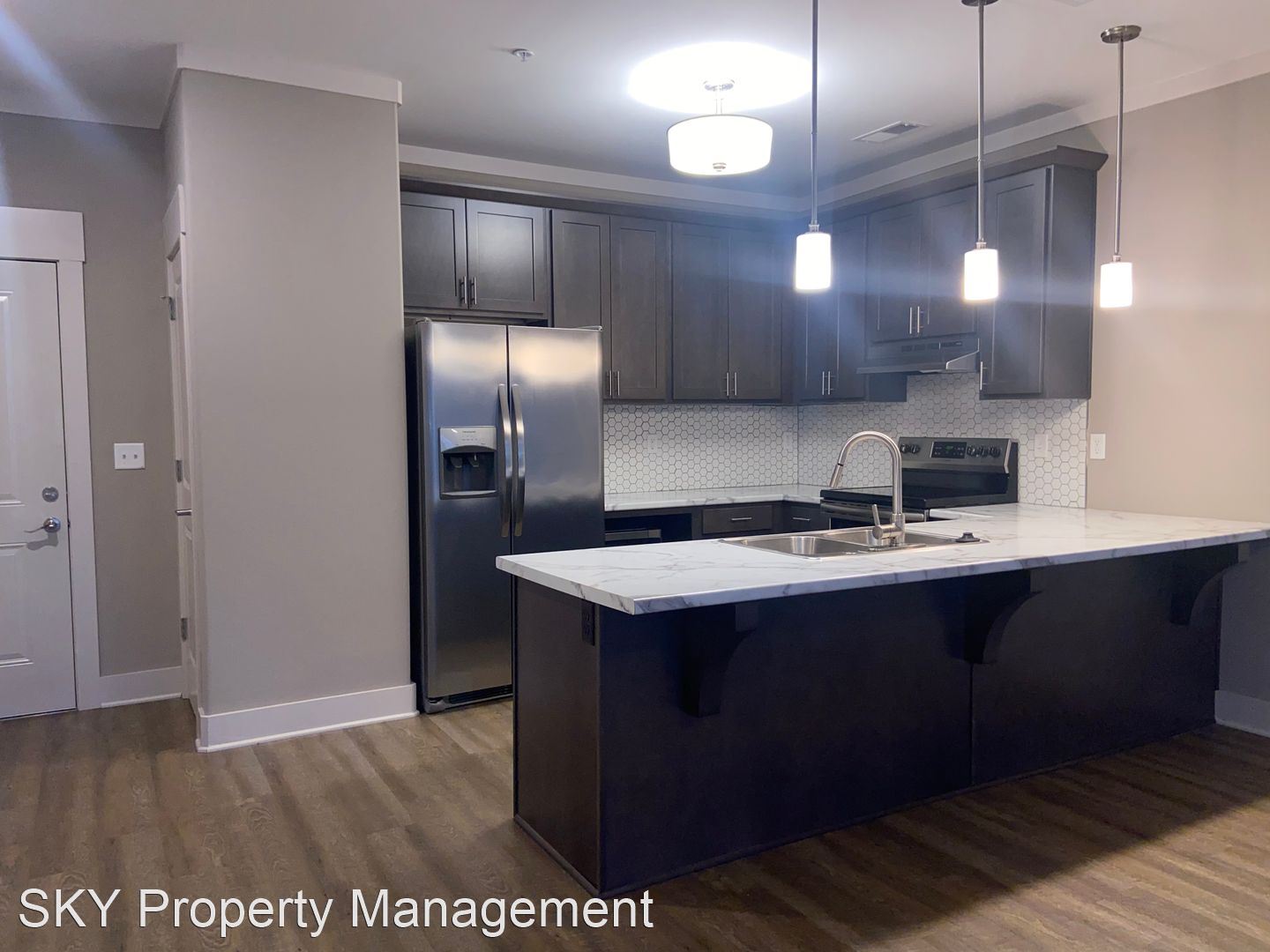 Lenox Place - First Floor Open Concept Flat Stainless Steel Kitchen Appliances Tile Kitchen Backsplash Hardwood Laminate Flooring Throughout Street Walk-Up Patio Water Utilities Included Washer and Dryer Set Included