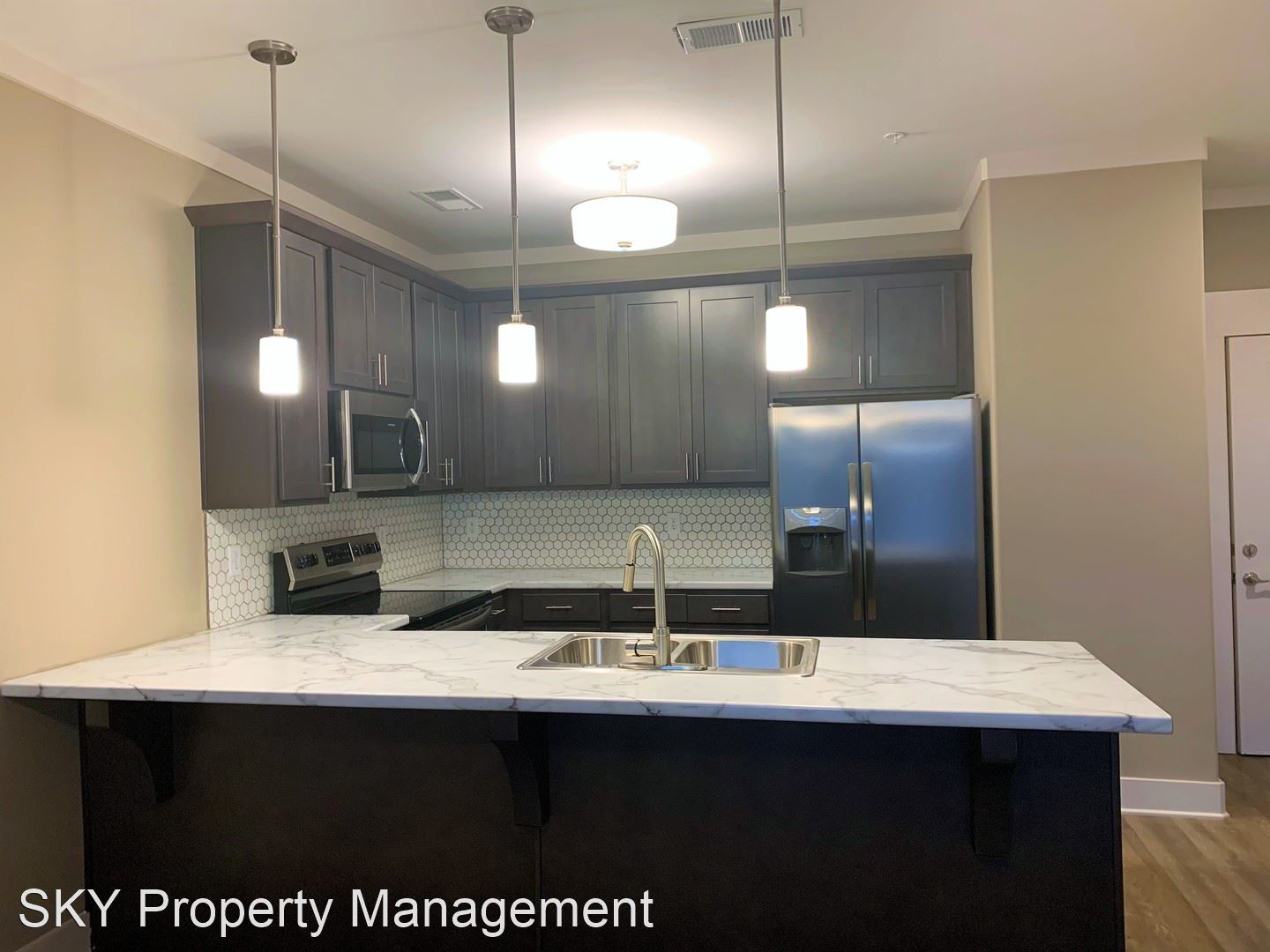 Lenox Place - First Floor Open Concept Flat Stainless Steel Kitchen Appliances Tile Kitchen Backsplash Hardwood Laminate Flooring Throughout Street Walk-Up Patio Water Utilities Included Washer and Dryer Set Included