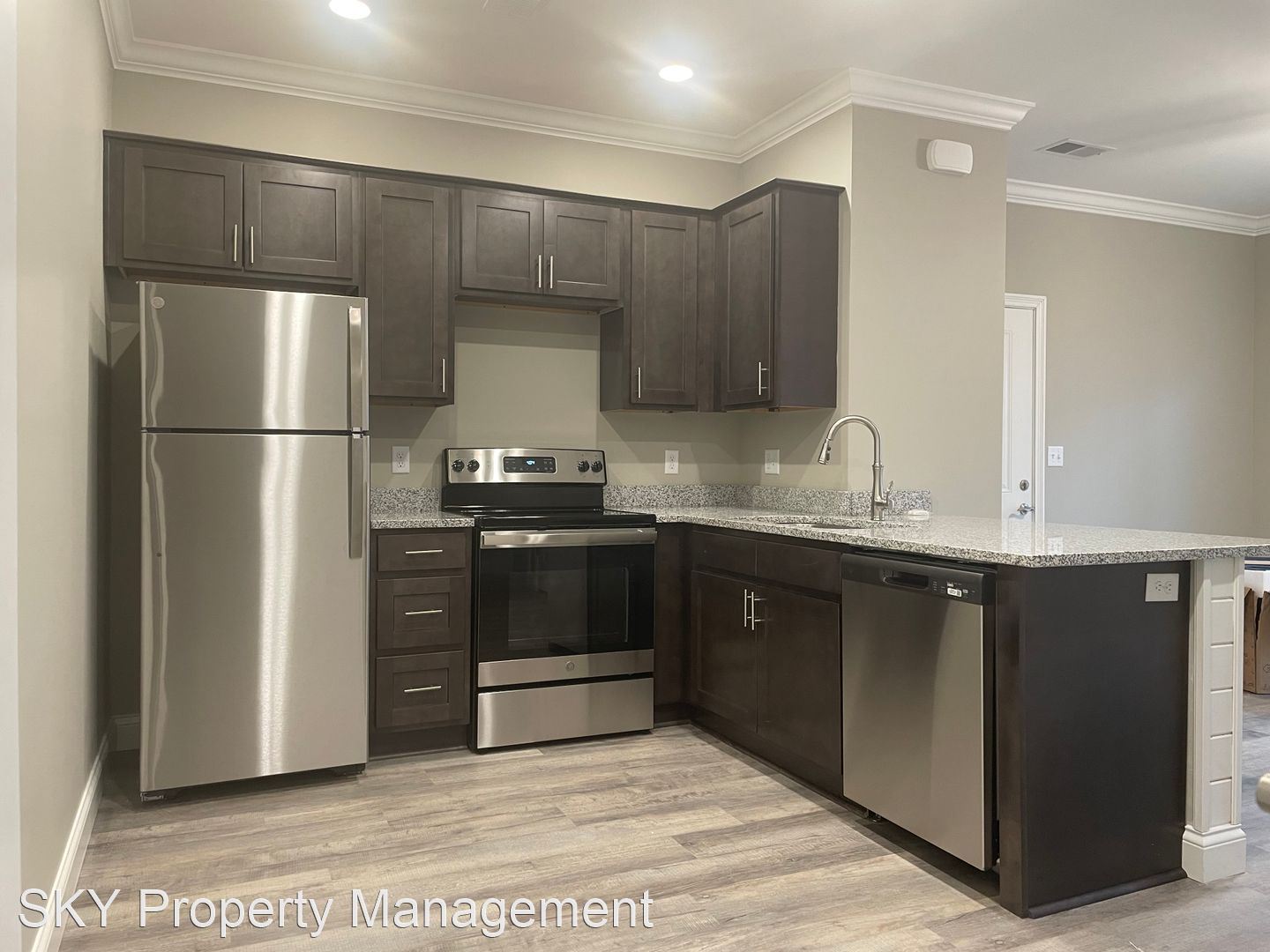 The Flats - Second-Floor Open Concept Flat Stainless Steel Kitchen Appliances Granite Counters Side by Side Washer and Dryer Connection Hardwood Laminate Throughout Patio with Outdoor Storage Closet
