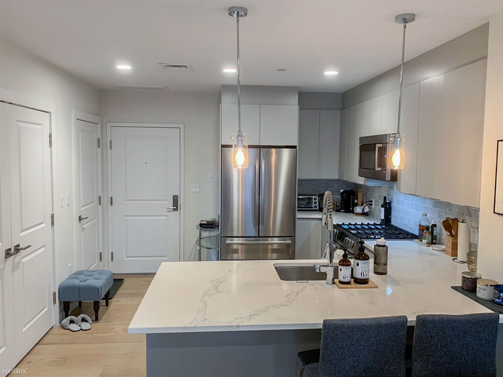 Stunning New Construction 2BR/2Bath with Garage Parking + Outdoor Spac - Video available! Stunning, new construction 2BR/2Bath with garage parking, private outdoor space, and a gorgeous open concept floor plan in East Boston's Orient Heights. European style kitchen has a marble backsplash, quartz countertops, and stainless steel Bosch appliances. NEST thermostat controlled temperature and heated tiles in the bathroom. Spend summer mornings with a coffee on your private balcony overlooking Noyes Park. Very short walk to the Blue Line train and just a 9 minute ride into downtown Boston! Walk across the street to the East Boston Greenway & Constitution Beach. Other modern comforts include central air conditioning, in-unit washer dryer, and hardwood floors in all living areas. No Dogs Allowed (RLNE5789349)